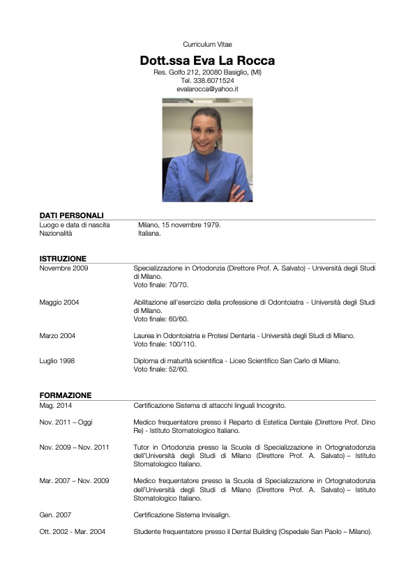 Sono un'ortodontista specializzata con certificazione Invisalign, Incognito (Perfezionamento e Eccellenza in Ortodonzia – corso RWC 7/Face) e in continuo aggiornamento.