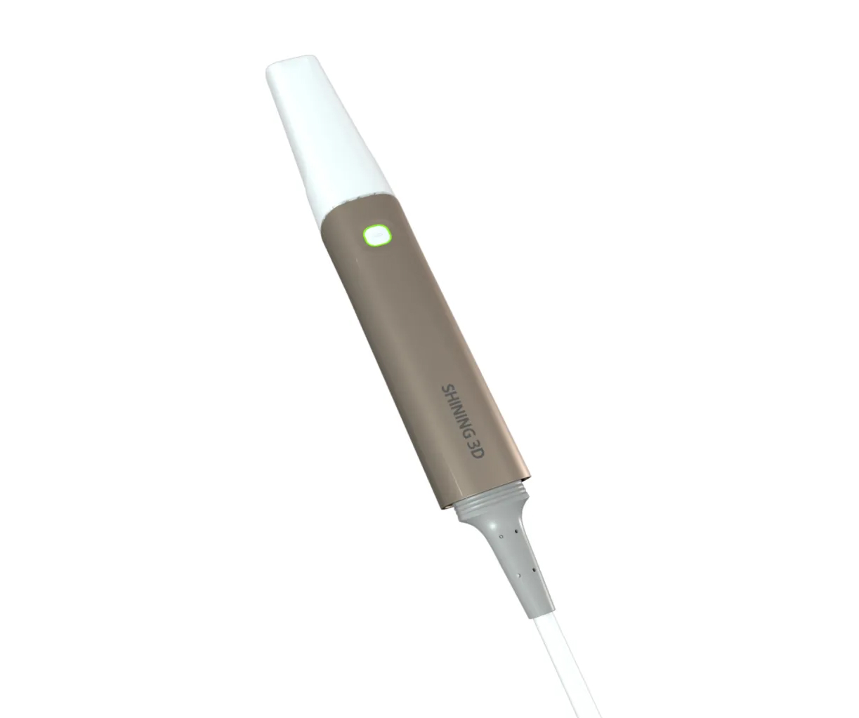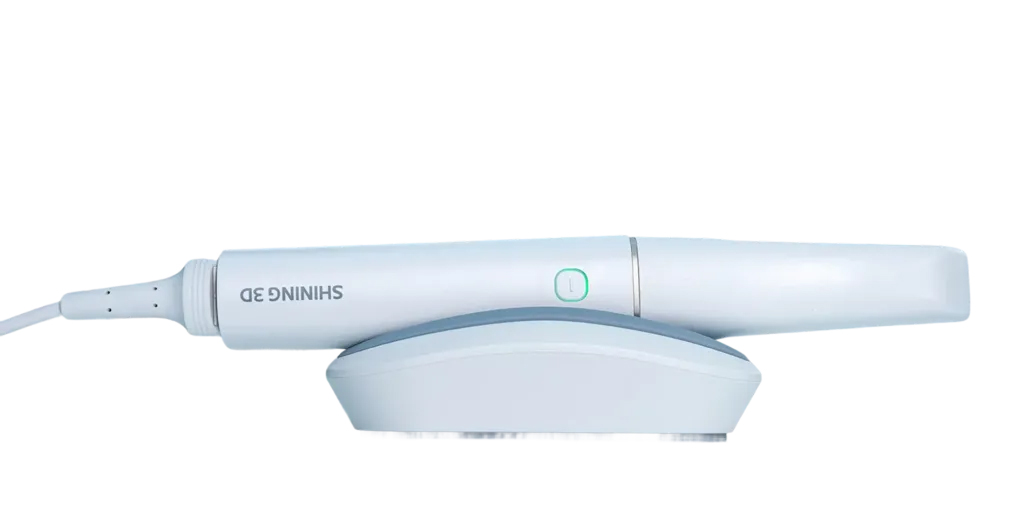 Il dispositivo funziona come uno scanner intra-orale standard per catturare immagini di casi dentuli, consentendo scansioni dettagliate di denti e strutture orali. Inoltre, funge da sistema di fotogrammetria, che viene utilizzato per registrare con precisione la posizione degli impianti dentali nei casi edentuli.